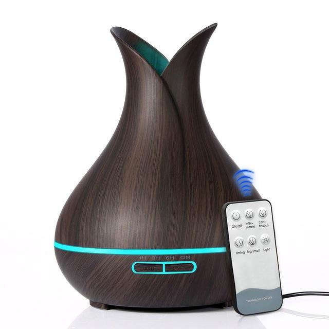 400 ml Ultrasonic Air Humidifier Aroma Essential Oil Diffuser with Wood Grain 7 Color Changing LED Lights for Office Home